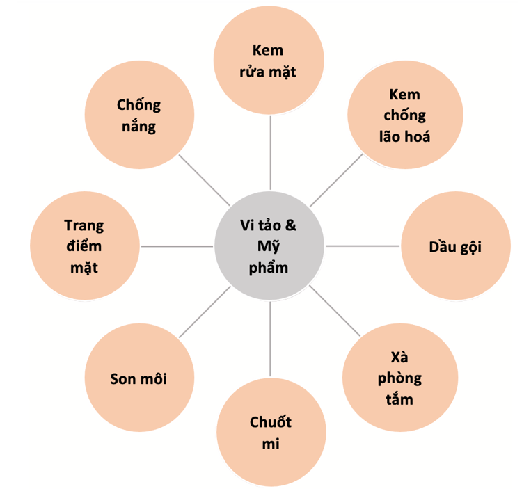 Vi tảo là những sinh vật quang hợp tạo ra các chất chuyển hóa có giá trị khi tiếp xúc với các điều kiện bất thuận, stress như nhiệt độ cao hoặc thấp, độ mặn cao, áp suất thẩm thấu, quá trình quang hoá, bức xạ tia cực tím. Các chất chuyển hóa có giá trị này đã thu hút sự chú ý của các nhà nghiên cứu ngành công nghiệp mỹ phẩm và trang điểm để được sử dụng trong các sản phẩm chống lão hóa, kem chống nắng và làm trắng da. Các chất chuyển hóa thứ cấp của vi tảo có thể có tác dụng chống lại mụn hoặc chống vi khuẩn; cũng có thể sửa chữa và chữa lành da, bảo vệ da khỏi tác hại của tia UV và ngăn ngừa viêm nhiễm. Các sản phẩm mỹ phẩm hiện tại có thể được thay thế bằng các sản phẩm mỹ phẩm có nguồn gốc từ vi tảo, thân thiện với môi trường và an toàn, khiến chúng trở nên quan trọng công khai vì mọi người muốn có các sản phẩm tự nhiên nhất có thể. Hiện nay một số sản phẩm có nguồn gốc từ vi tảo đã được bán trên thị trường và công nghệ sinh học của vi tảo đang ngày càng phát triển hơn mỗi ngày sẽ tạo ra nhiều sản phẩm thương mại hơn trong thời gian ngắn. Bài đánh giá này nhấn mạnh tiềm năng của các loài vi tảo và các phân tử hoạt tính sinh học có nguồn gốc từ chúng trong mỹ phẩm thiên nhiên đang thịnh hành với sự chú trọng đặc biệt vào các lĩnh vực ứng dụng và các bước sản xuất mỹ phẩm.